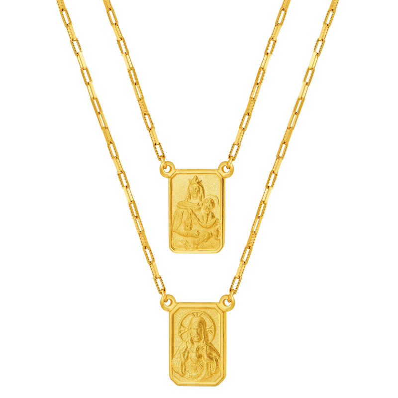 Escapulário de Ouro 18k Nsra do Carmo e Sagrado Coração de Jesus