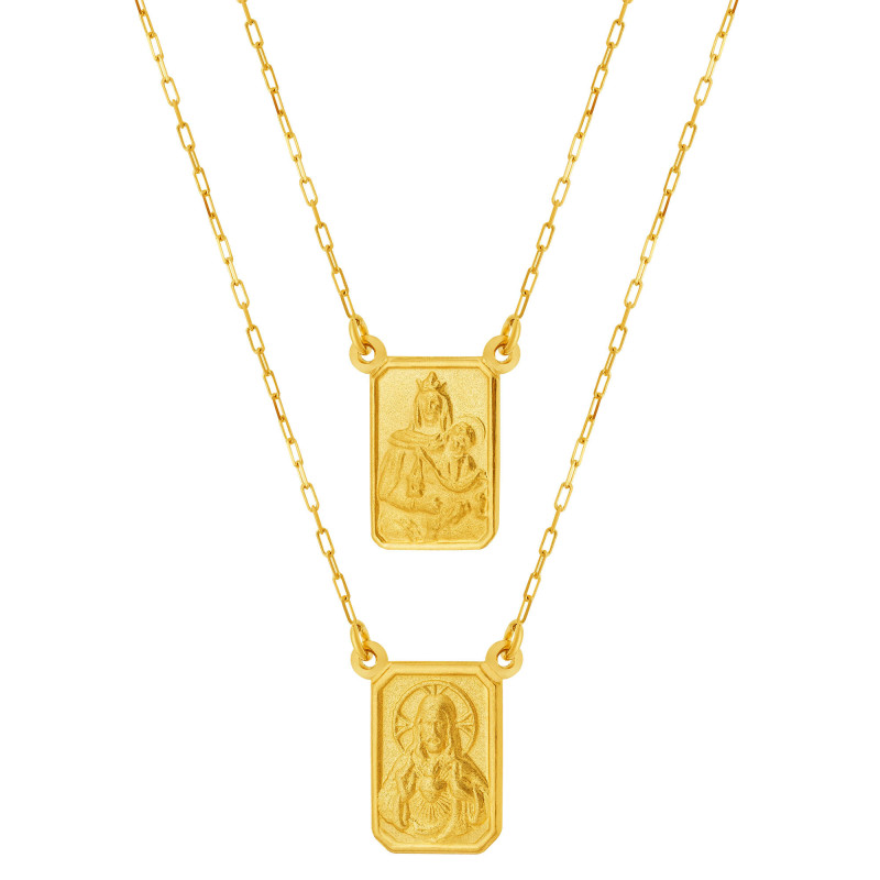 Escapulário de Ouro 18k Nsra do Carmo e Sagrado Coração de Jesus