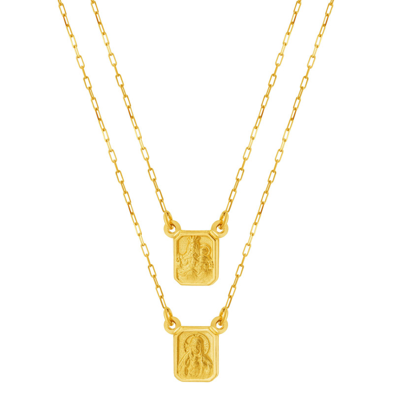 Escapulário de Ouro 18k Nsra do Carmo e Sagrado Coração de Jesus
