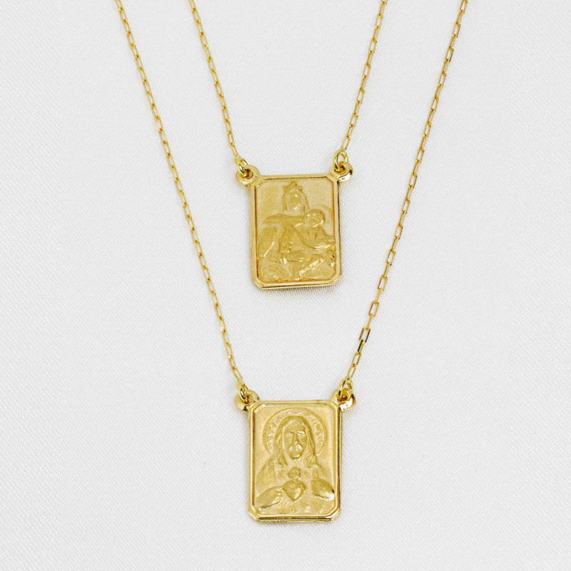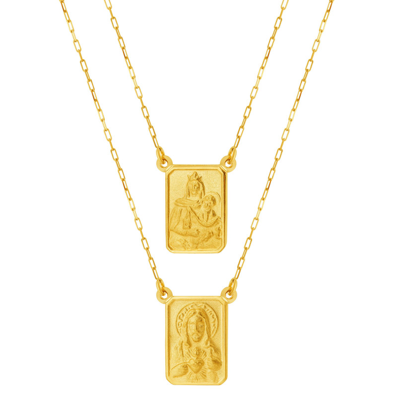 Escapulário de Ouro 18k Nsra do Carmo e Sagrado Coração de Jesus