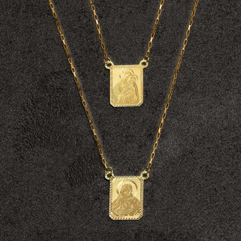 Escapulário de Ouro 18k Nsra do Carmo e Sagrado Coração de Jesus