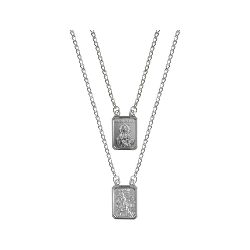 Escapulário em Aço Sagrado Coração de Jesus e Nossa Sra. de Nazaré 15x11mm 60cm