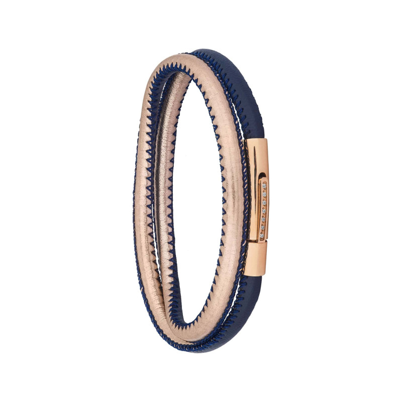 Pulseira em Aço Duo Blue e Rose Fecho com Zircônia IPR 5mm 38.5cm