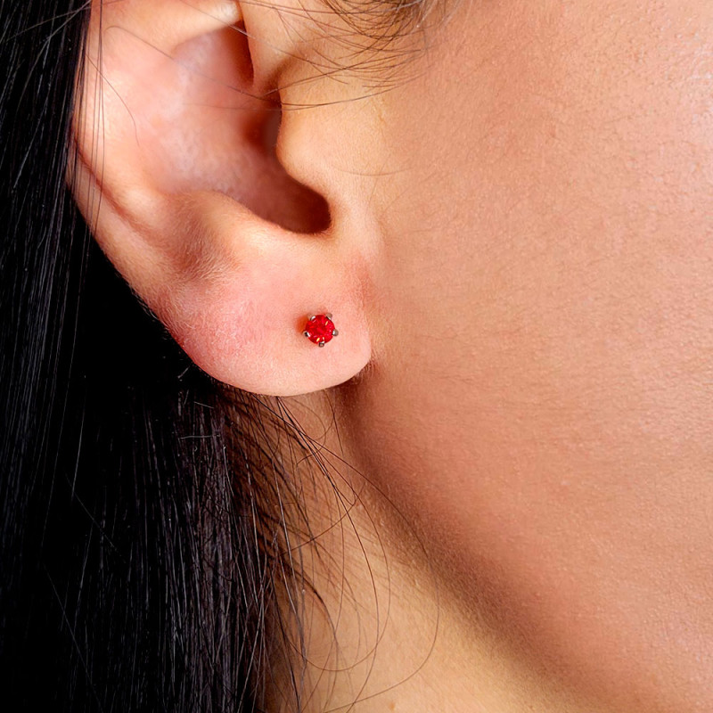 323193 - Brinco Aço Estrela com Zircônia Vermelha 3.7mm