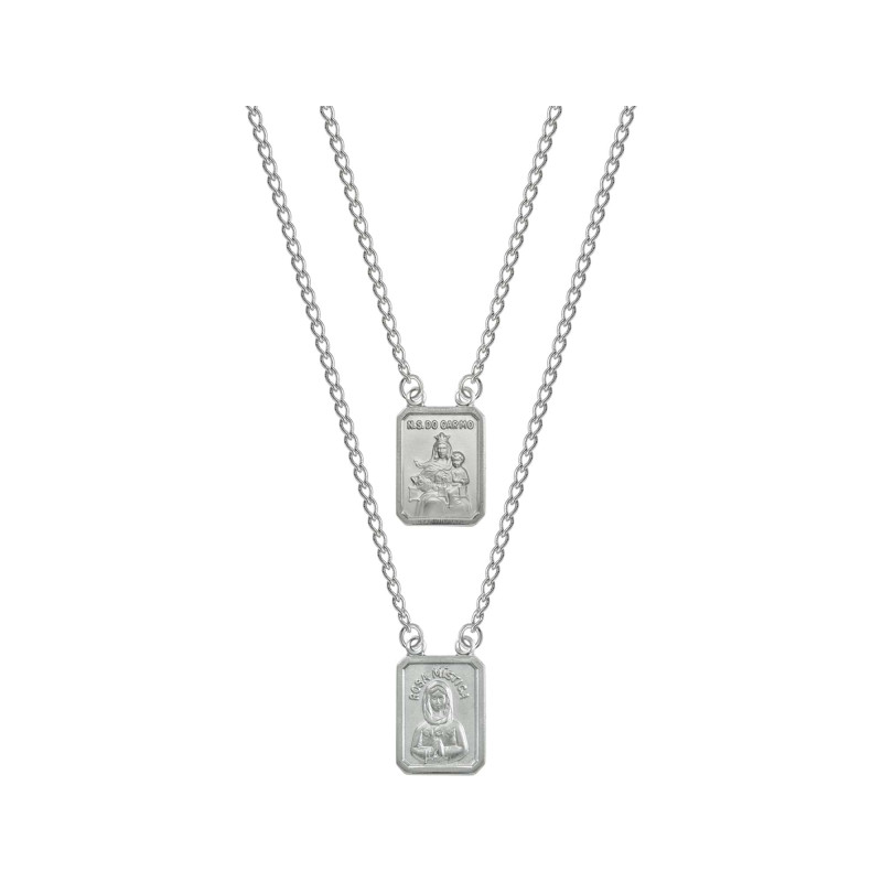 Escapulário em Aço Nossa Sra. do Carmo e Rosa Mistica 14x11mm 60cm