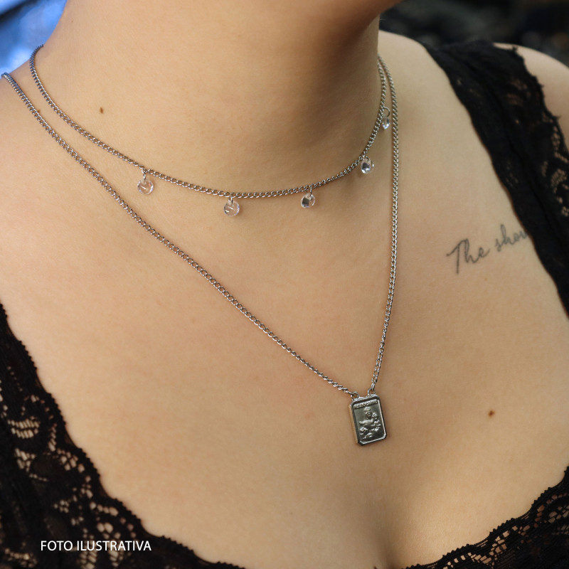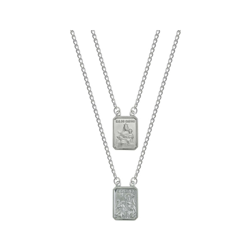 Escapulário em Aço Nossa Sra. do Carmo e São Gabriel 14x11mm 60cm
