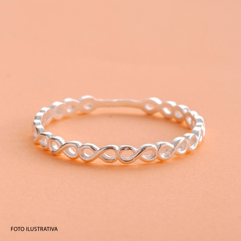 Sinal da Perseverança e do Compromisso, o Anel Prata Link Infinitos é uma das joias da Coleção Delicata, ele combina com todas as idades e é perfeito para presentear quem ama.