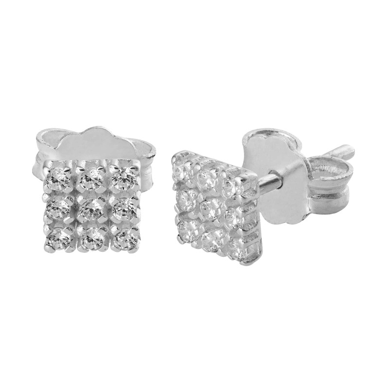Brinco Prata Quadrado com Zircônias Brancas 00080