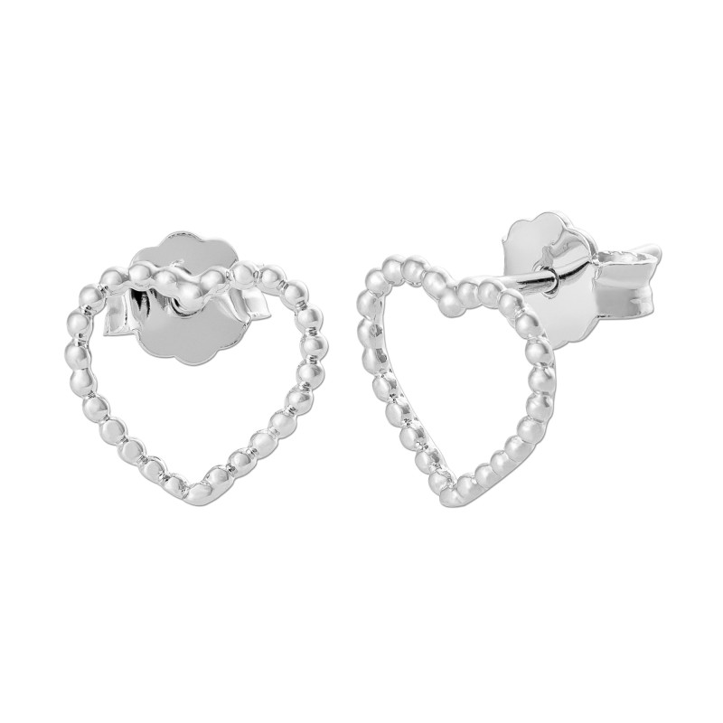 Brinco Prata Coração Vazado Bolinha 00062
