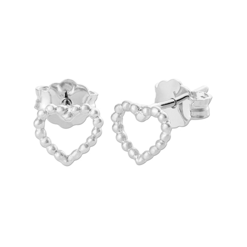 Brinco Prata Mini Coração Vazado Bolinha 00055