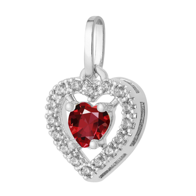 Pingente de Prata Coração com zircônia Vermelha 00070