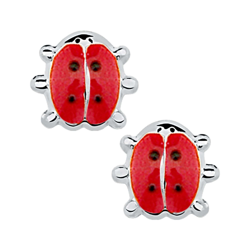 Brinco em Prata Joaninha com Resina Vermelha 6.50x7mm