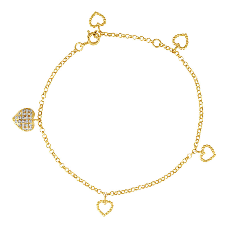 Pulseira Prata Portuguesa Revestida de Ouro 18k Coração com Zircônia 19cm 00190