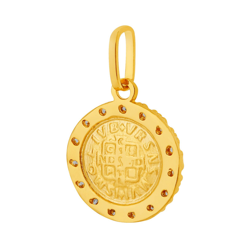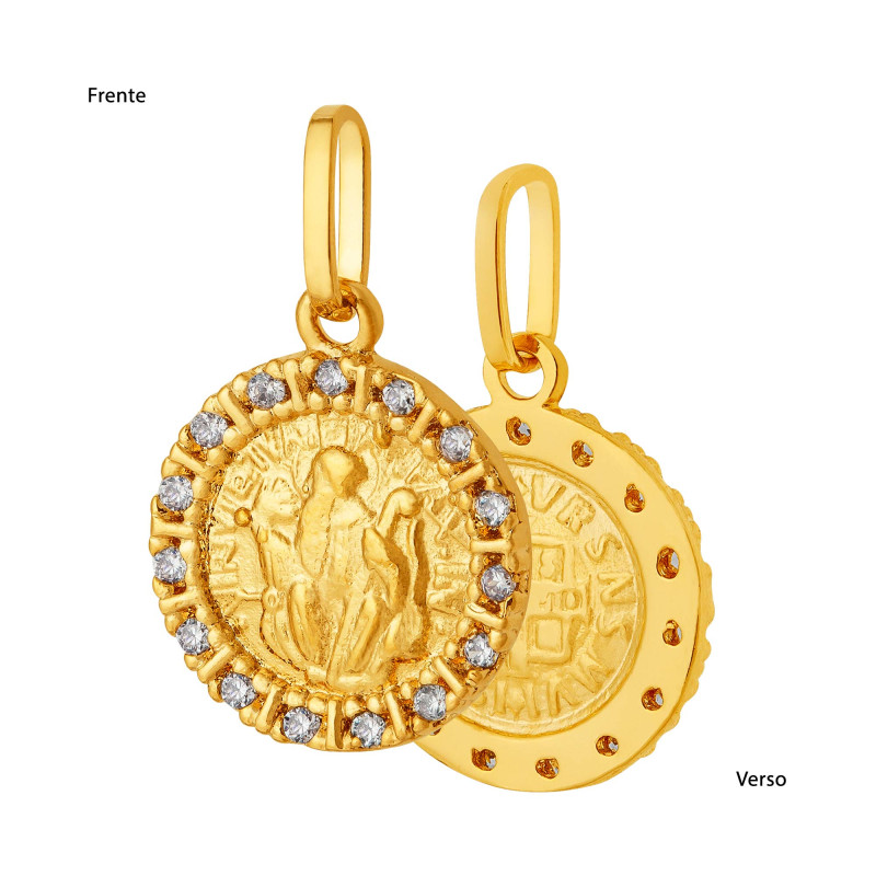 Pingente de Prata São Bento com zircônias revestido com ouro 18k 00110