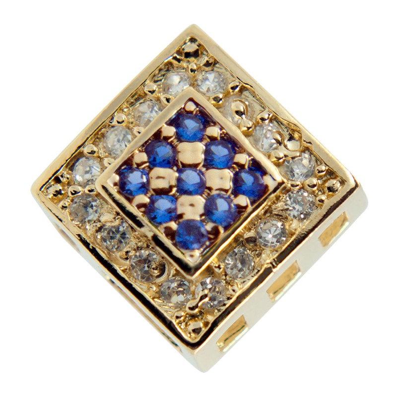 Pingente em Prata Revestido com Ouro 18K Quadrado com Zircônia Branca e Azul Centro 9x9mm 00145