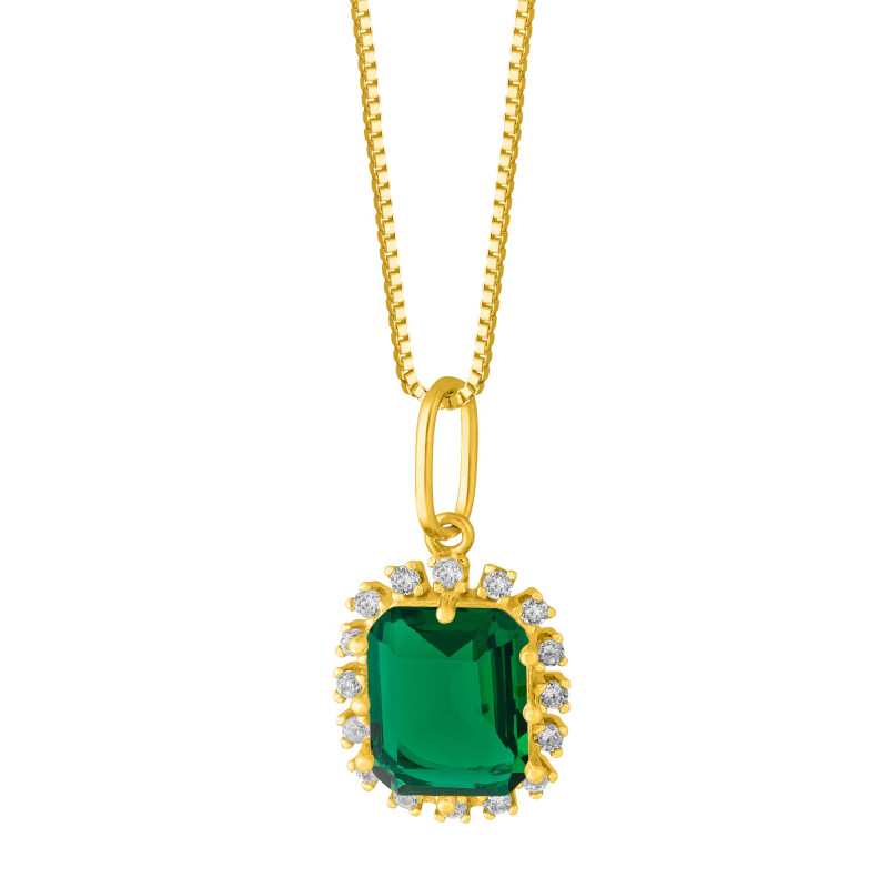 Colar de Prata Queens Cristal Esmeralda Revestido com Ouro 18k 45cm