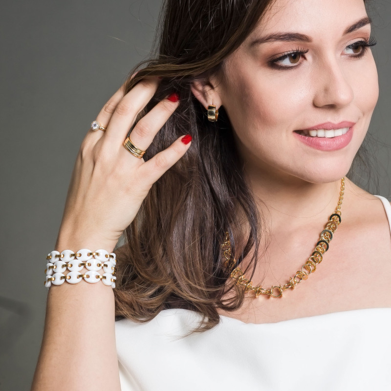 Colar em Aço Berloque com 18 Argolas 45cm Gold IPG
