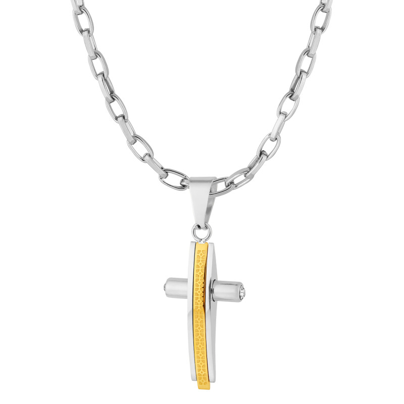 Colar de Aço Cruz Trabalhada IPG 30x15mm