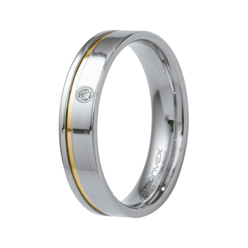 Aliança em Aço Plus 6mm com Filete Lateral em Ouro e Zircônia Branca