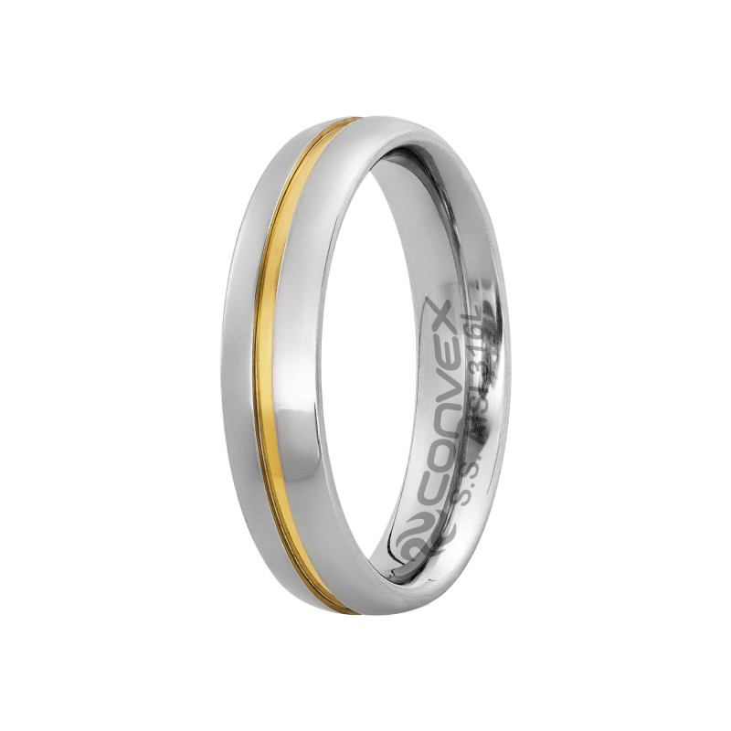 Aliança em Aço Plus Max 5mm Abaulada com Filete Central em Ouro