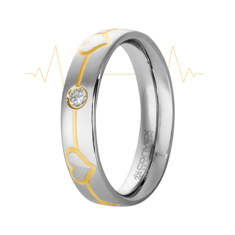 Aliança em Aço Love Beat Shine 5mm com Filete Gold IPG e Zircônia 2.5mm