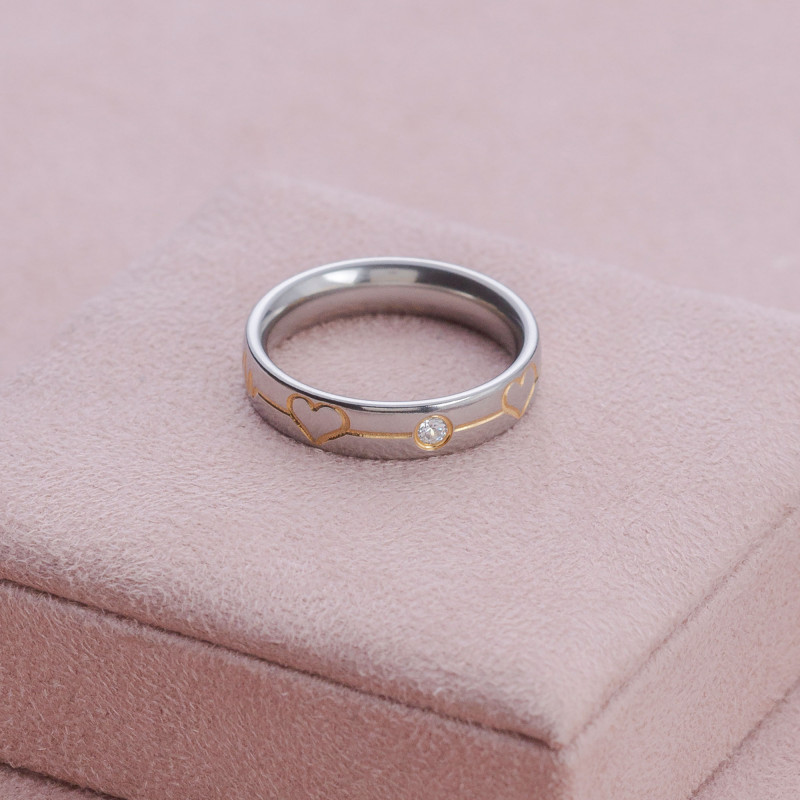Aliança em Aço Love Beat WH 5mm com Filete em Gold IPG