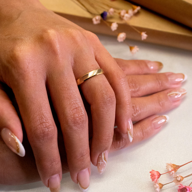 Aliança em Ouro 10K Trabalhada na Diagonal 3.40mm
