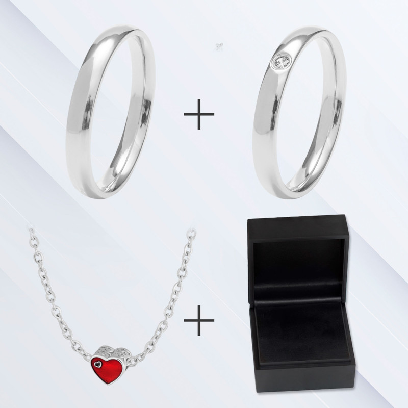 01 Aliança de Aço Argos 3mm e 01 Aliança de Aço com Zircônia Aster 3mm nos aros que escolher.