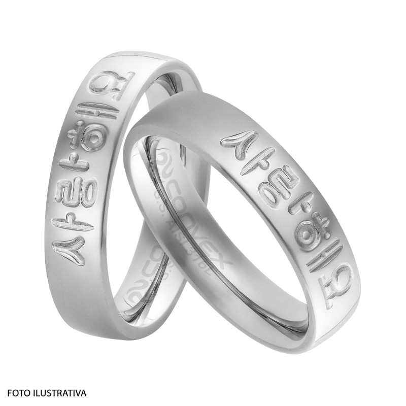 Aliança de Aço Eu Te Amo em Coreano 5mm