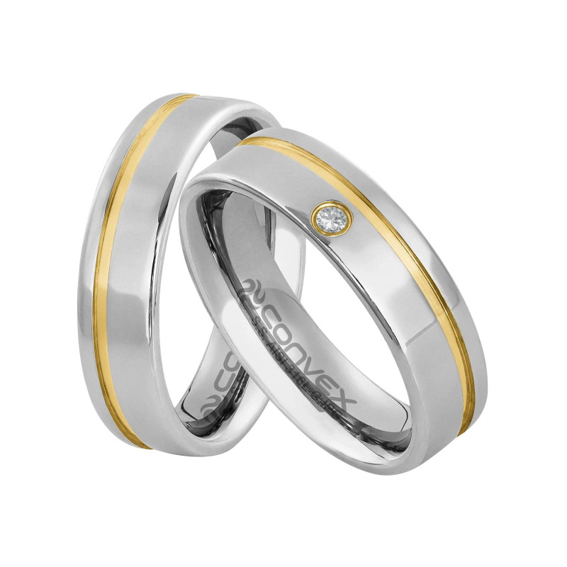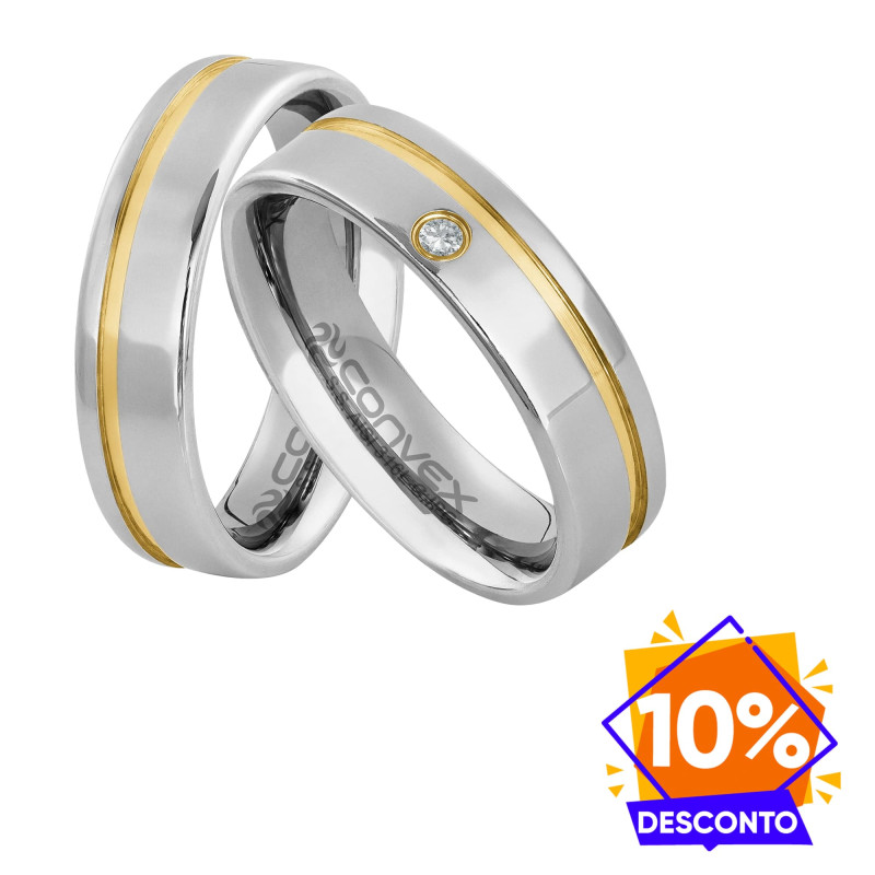 Aliança em Aço Paris 6mm com Filete Lateral Gold IPG e Zircônia 2mm
