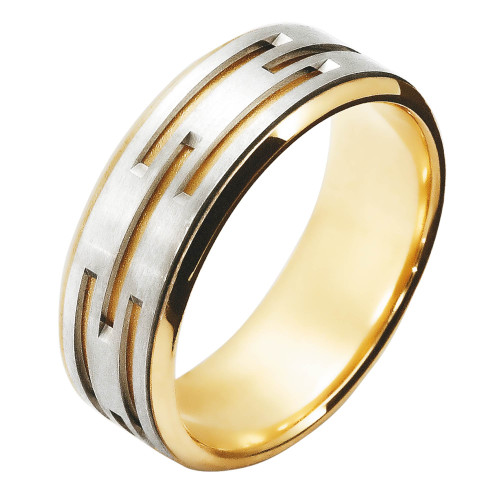 Aliança de Ouro 18K Surprise Giratória em Ouro Branco Trabalhada 7.2mm (60150)