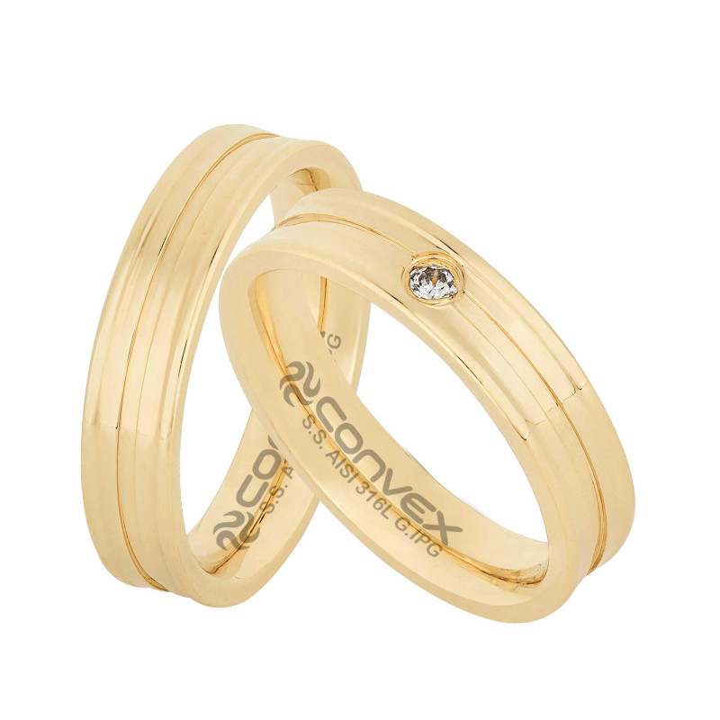 Aliança em Aço Ena 5mm Gold IPG com Zircônia Swarovski