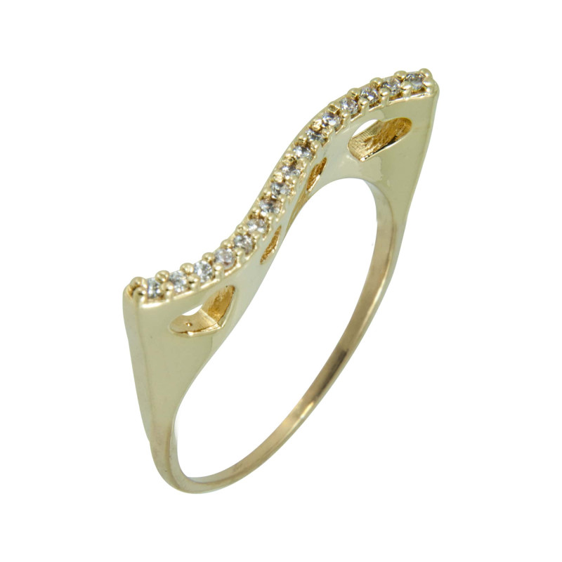 Anel em Prata Revestido com Ouro 18K Onda Vazado Coração com Zircônia 20mm