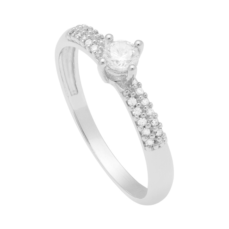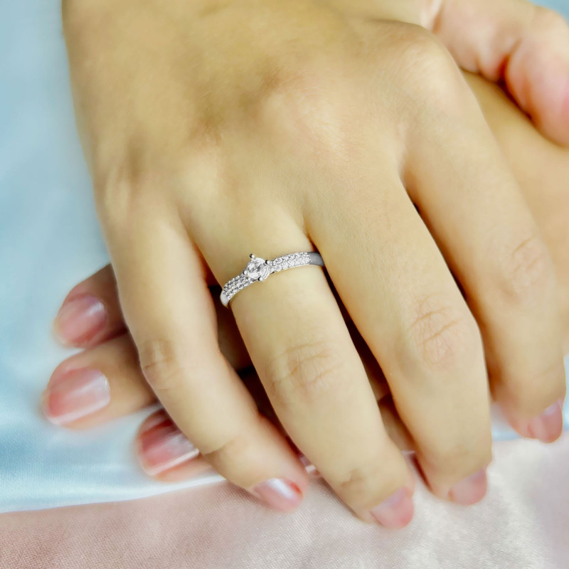 Sofisticação com um Toque Descomplicado – Anel Solitário em Ouro Branco 18K com Zircônias