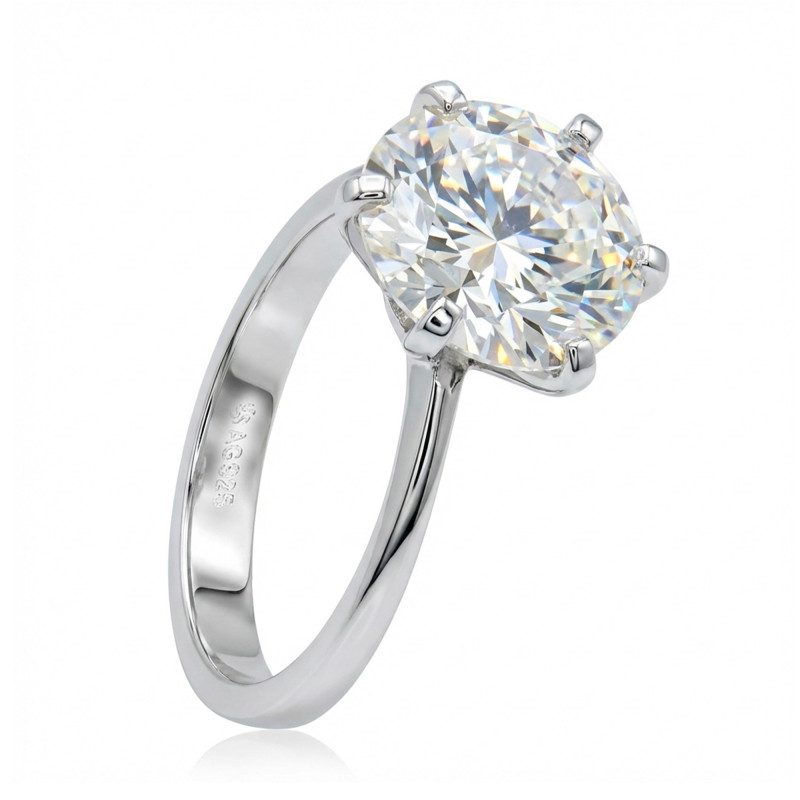 Anel de Prata Solitário Rhodinada com Pedra Moissanite 10mm