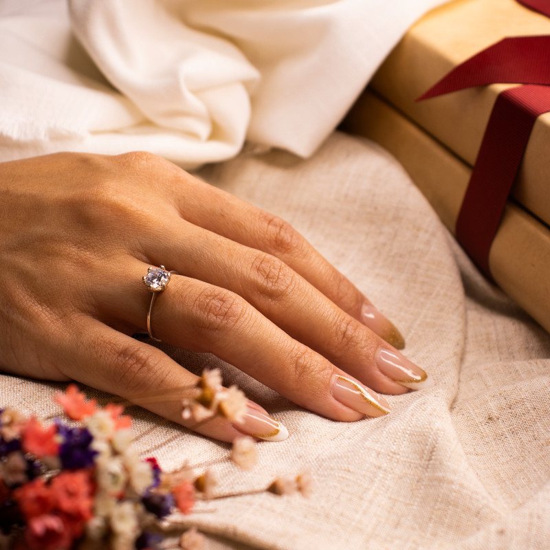 Anel em Prata Solitário 2.50mm com Zircônia Branca 5.50mm