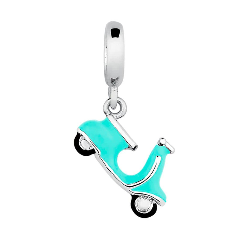 Pingente em Prata Link Bis/Lambreta Verde 12.5x16mm