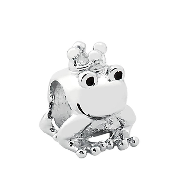 Pingente em Prata Link Sapo com Coroa e Resina Preta 7x9mm