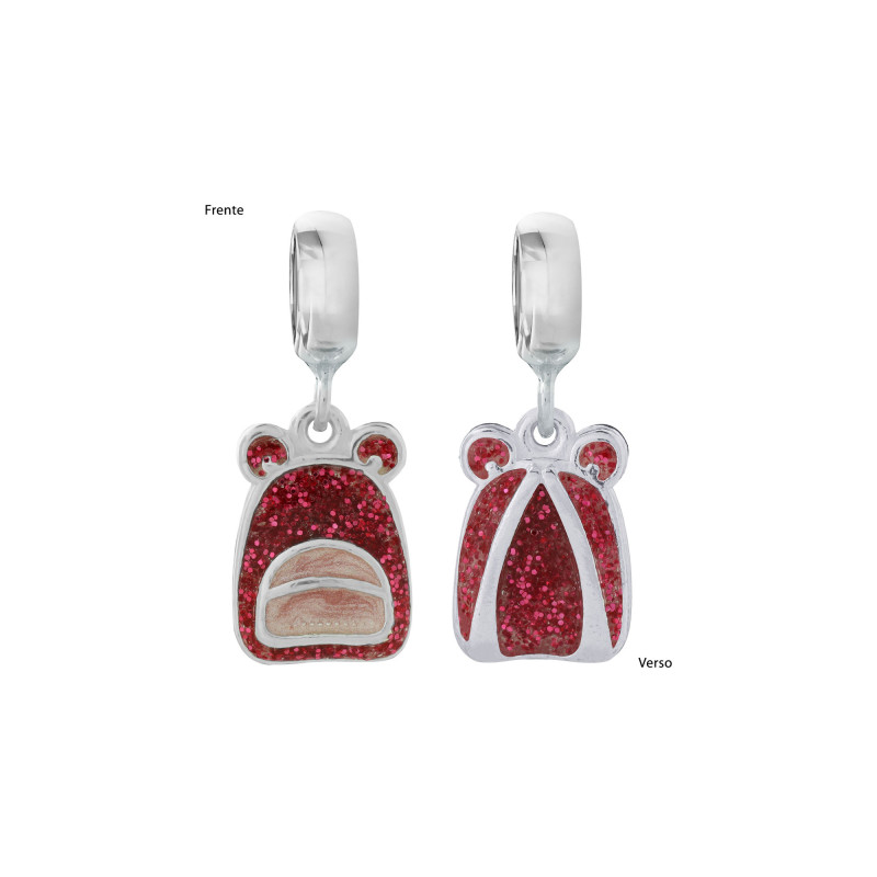 Pingente Prata Link Mochila com Resina Rosa e Glitter