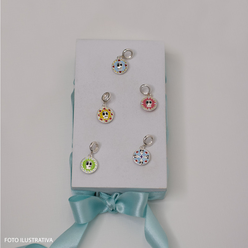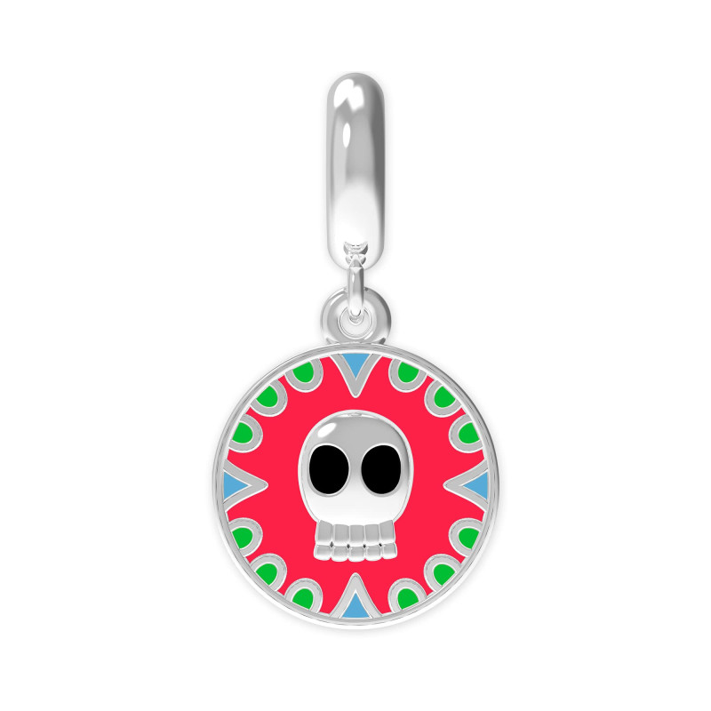 Berloque de Prata La Catrina Caveira Maia Link com Resina