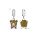 Pingente Prata Link Urso Caramelo com com Gravata Rosa e Zircônia