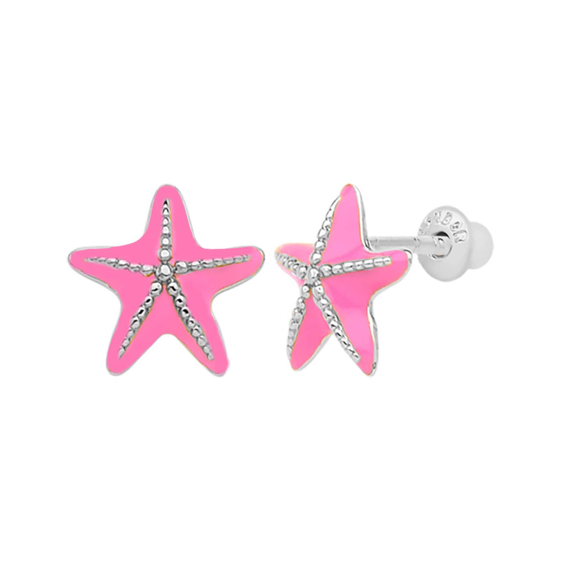 Brinco em Prata Estrela do Mar com Resina Rosa 8.60x8.80mm 00100