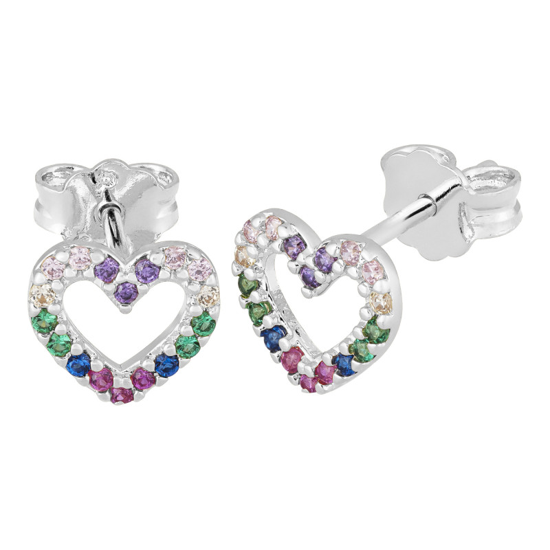 Brinco Prata Coração com Zircônias Coloridas 8x8mm 00085