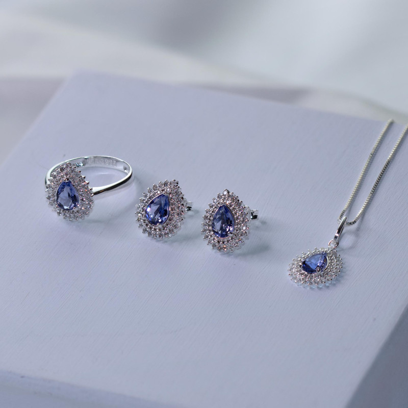 Brinco de Prata Coleção Queens Cristal Tanzanita