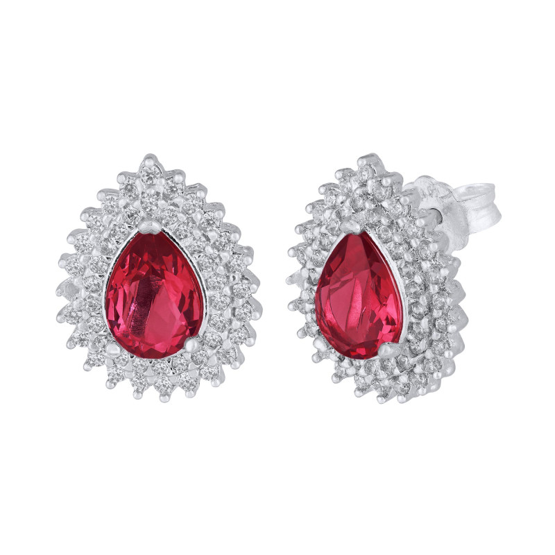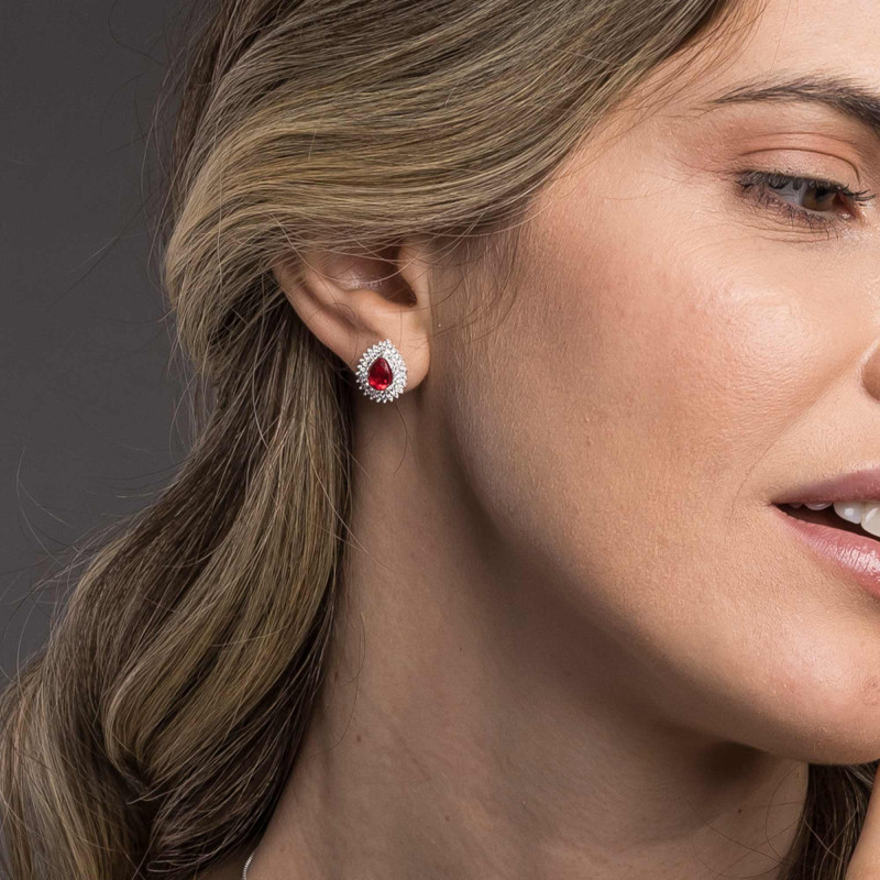 Pedras: 47 Zircônias Brancas de 1,0mm e 1 Cristal Gota Rubi 5x7mm