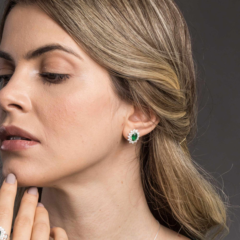 Brinco de Prata Coleção Queens Cristal Esmeralda
