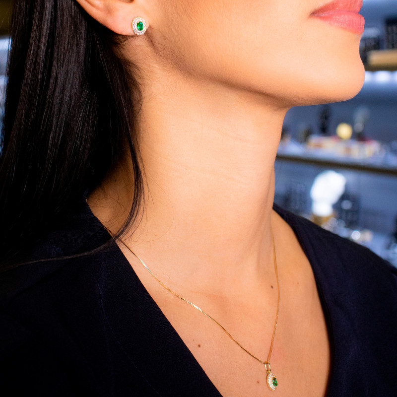 Brinco Prata Oval Zircônia Verde 10x7mm 00145