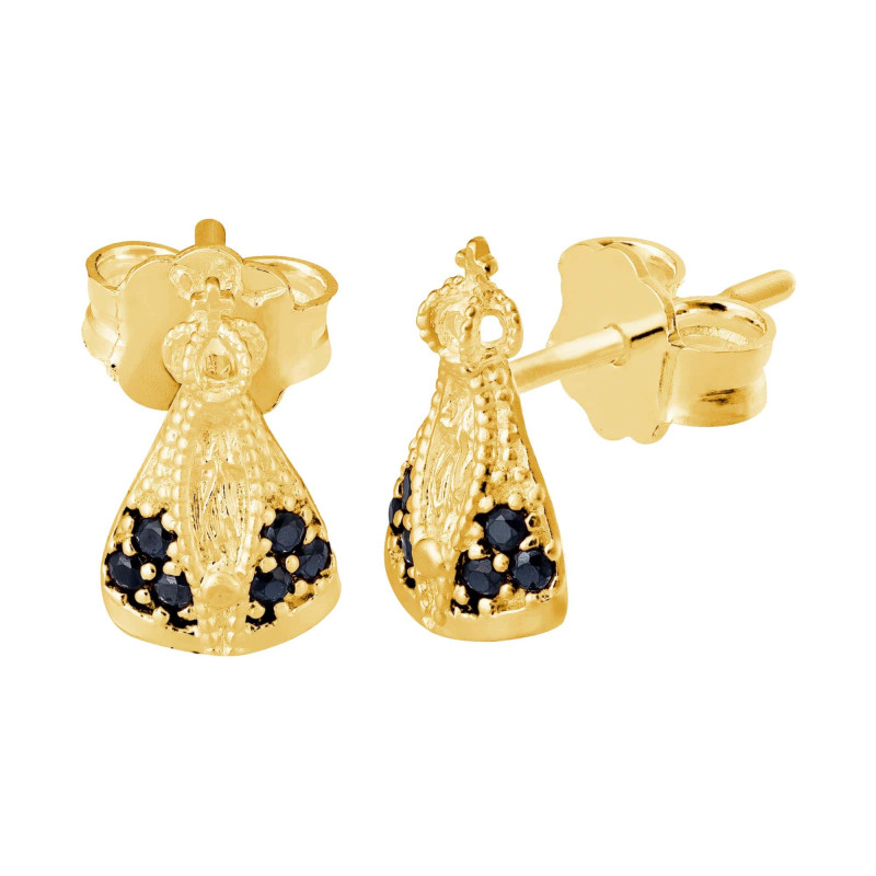 Brinco Prata Revestida N. Sra. Aparecida com Zircônias Negras 00081