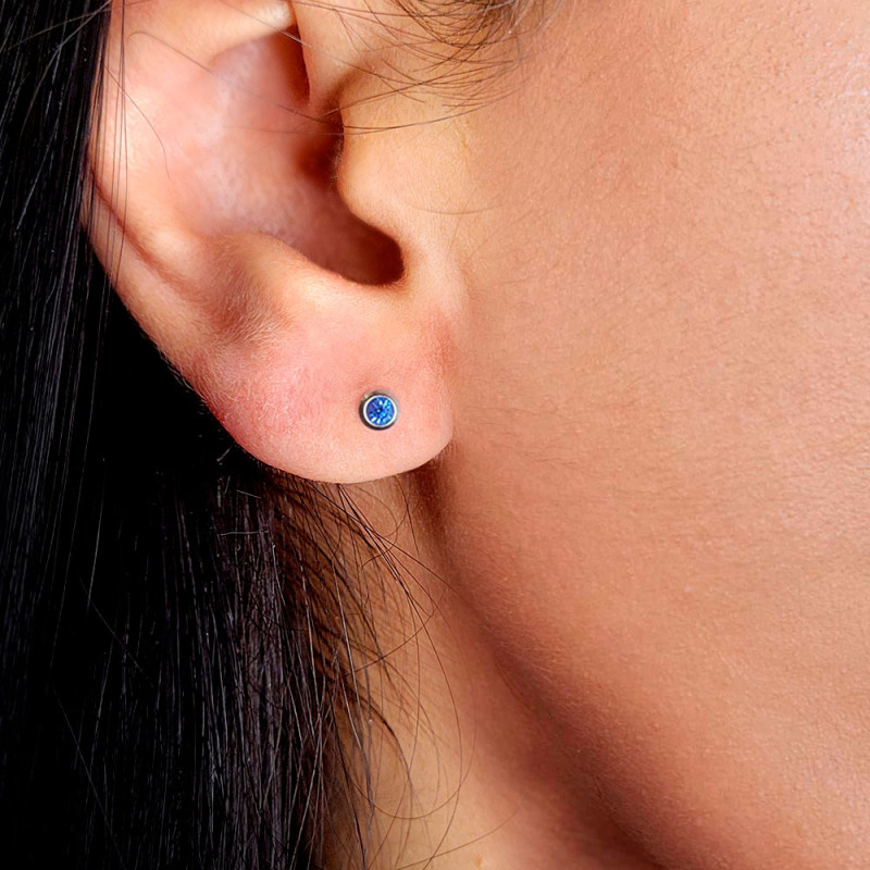 323192 - Brinco Aço Redondo com Zircônia Azul Claro 4mm
