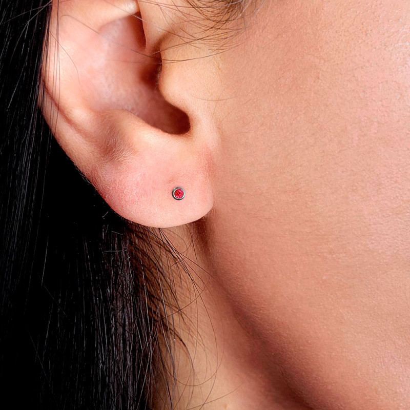 323184 - Brinco Aço Redondo com Zircônia Vermelha 2.8mm